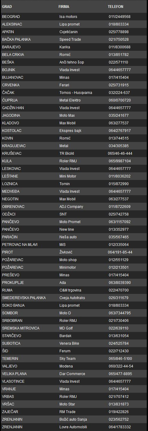 SPISAK DISTRIBUTERA REZERVNIH DELOVA